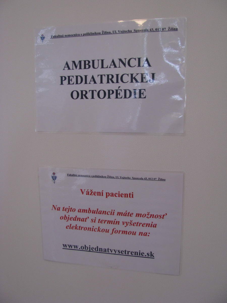 Oddelenie pediatrickej ortopédie Fakultnej nemocnice s poliklinikou v Žiline ošetruje pacientov v nových priestoroch. Príjmová, ordinačná a sonografická ambulancia sa presťahovali na prízemie detského pavilónu a poskytujú tak pacientom bezbariérový prístup v obnovených ordináciách. „Som veľmi rád, že sa podarilo presťahovať naše ambulancie do bezbariérových priestorov.